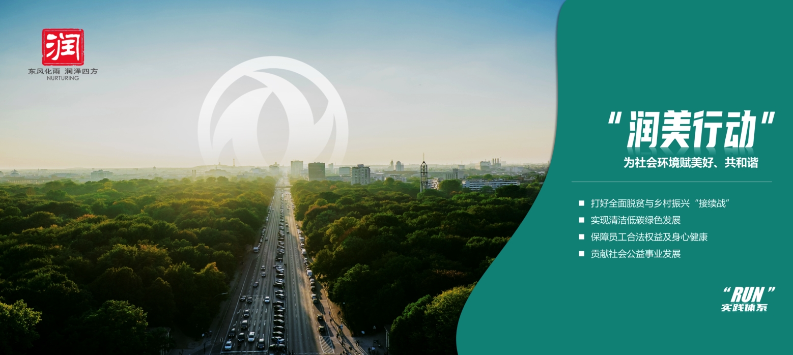 2021年,东风公司正式发布了新一轮社会责任行动计划——“润”计划3.0。该计划明确了东风公司新一轮社会责任工作的战略愿景、目标路径及实践体系,是东风公司下阶段履责工作的实践指南,将开启东风公司社会责任工作发展的新篇章。