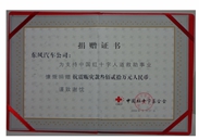 捐赠证书(中国红十字人道救助事业捐赠抗震赈灾款320万元)