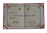 统计调查信息证明:东风汽车公司荣列2007年度中国最大500家企业(按营业收入统计第11名)