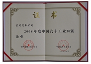 东风汽车公司按年度营业收入统计,贵企业荣列2008年度中国最大500家企业集团(第11名)