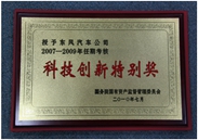 东风公司荣获2007-2009年任期考核“科技创新特别奖”。